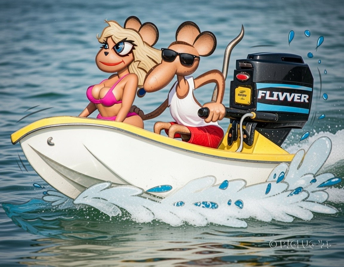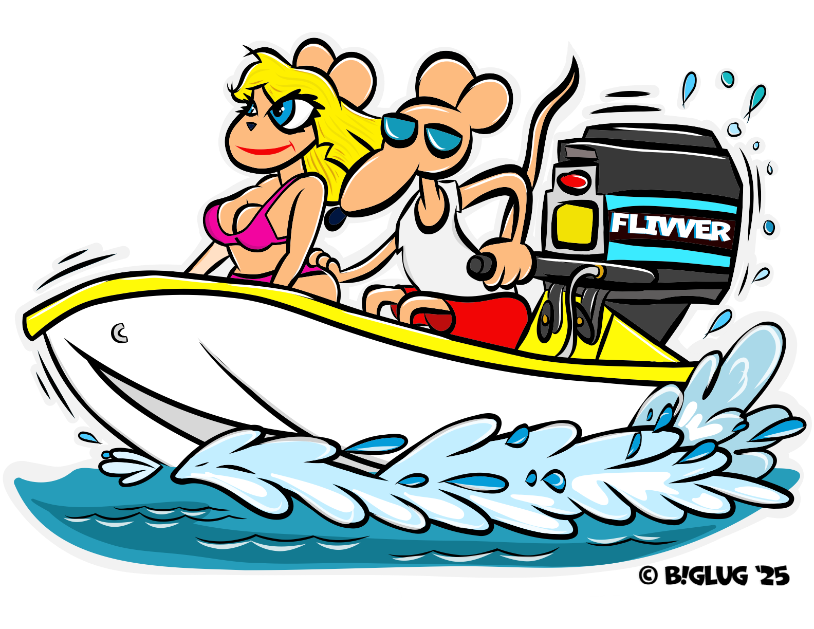 January 2026 - Flyin' Flivver Boat Art using traditional cartoon paper and pencil style, then through electronic formats on an iPad Pro and then through AI. We offer awesome discounts for Flivver Boat Cartoon Art Requests! Get your Fliver Boat Cartooned by the Creek Rat! A Killer Addition to the Wall on uour Man Cave! You can also take the electronic files and apply them to your own Tee-Shirts, etc.