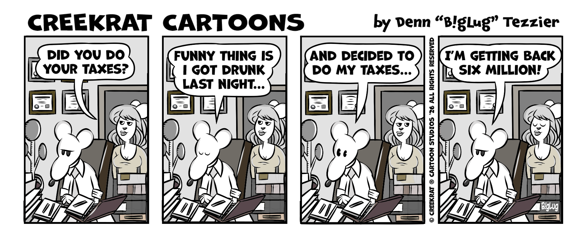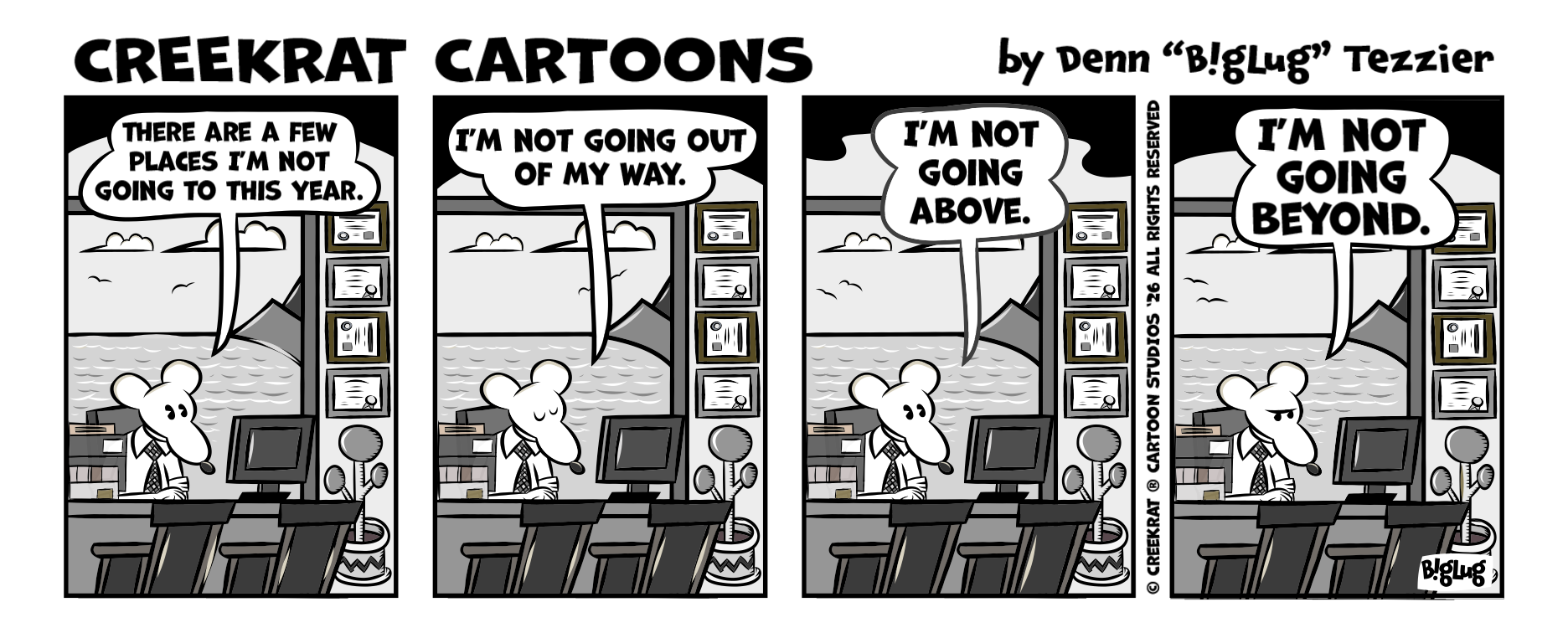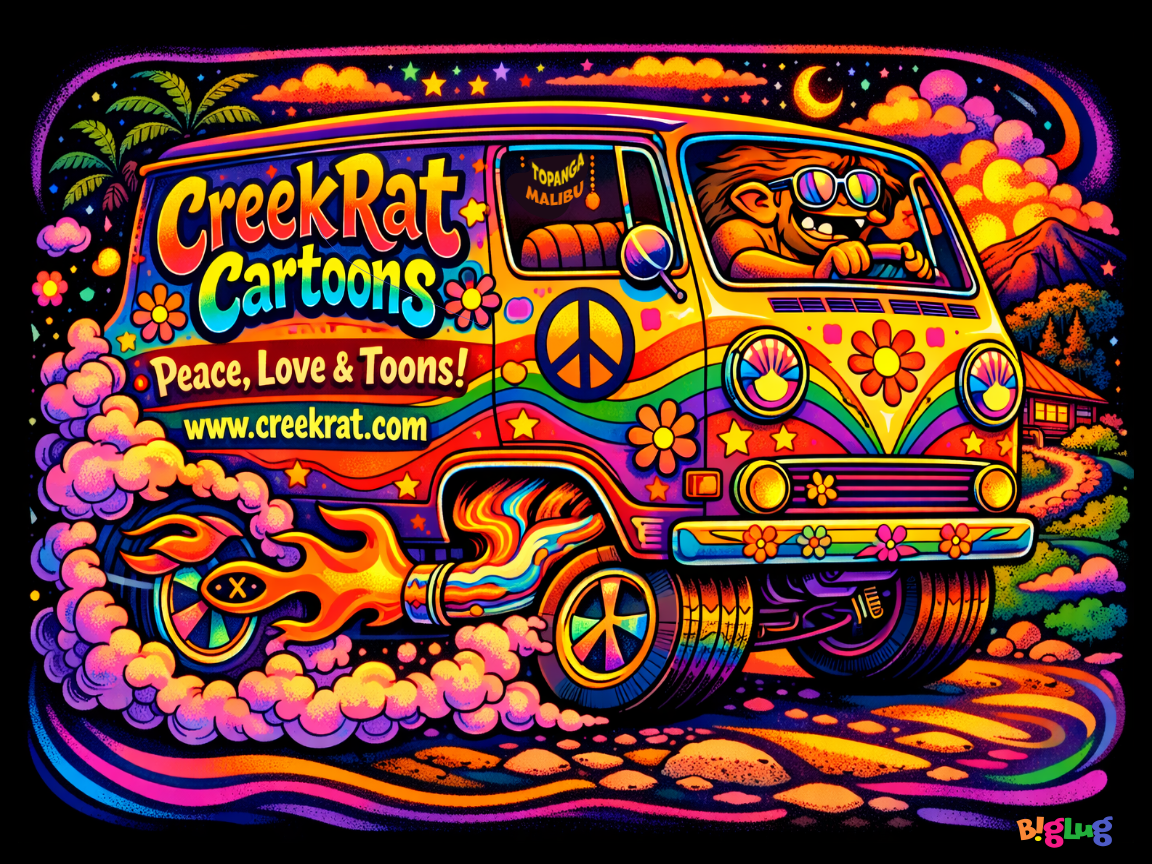CREEK RAT MERCH DROP! ALWAYS ADDING MORE STUFF! CHECK IT OUT HERE! Back by Popular Demand! Our Creek Rat Company Vintage Mercury "Tower of Power" and "Power Beast" Tees & Mugs! Our Creek Rat Merch Drop Vintage Flagship T-Shirts & Ball Caps Available Online! Our Creek Rat Cartoon Studios Vintage Flagship T-Shirt in White! Our Creek Rat Cartoon Studios Vintage Flagship T-Shirt in Black! Our Creek Rat Cartoon Studios Vintage Flagship Ball Caps! Back in Stock! Our Creek Rat Camo Ball Caps! Hey Check Out Our Cool University of California Topanga Canyon Creek Rat Co. 1969-2026 Vintage-Inspired Clothing Collection! Our Creek Rat Company Vintage-Inspired Clothing Collection from Daze Gone By! Fer EZ Ordering of Original Creekrat CARtoon Studios Art, all youse gotta do is contact Denn "BigLug" Tezzier at Creekrat CARtoon Studios - email biglug@creekrat.com - phone/text +1.206.683.8682 and tell us what type of CARtoon youse need and include yer best descriptions, ideas and suggestions and provide us with as many examples and/or photos as youse can, etc! FREE ESTIMATES!