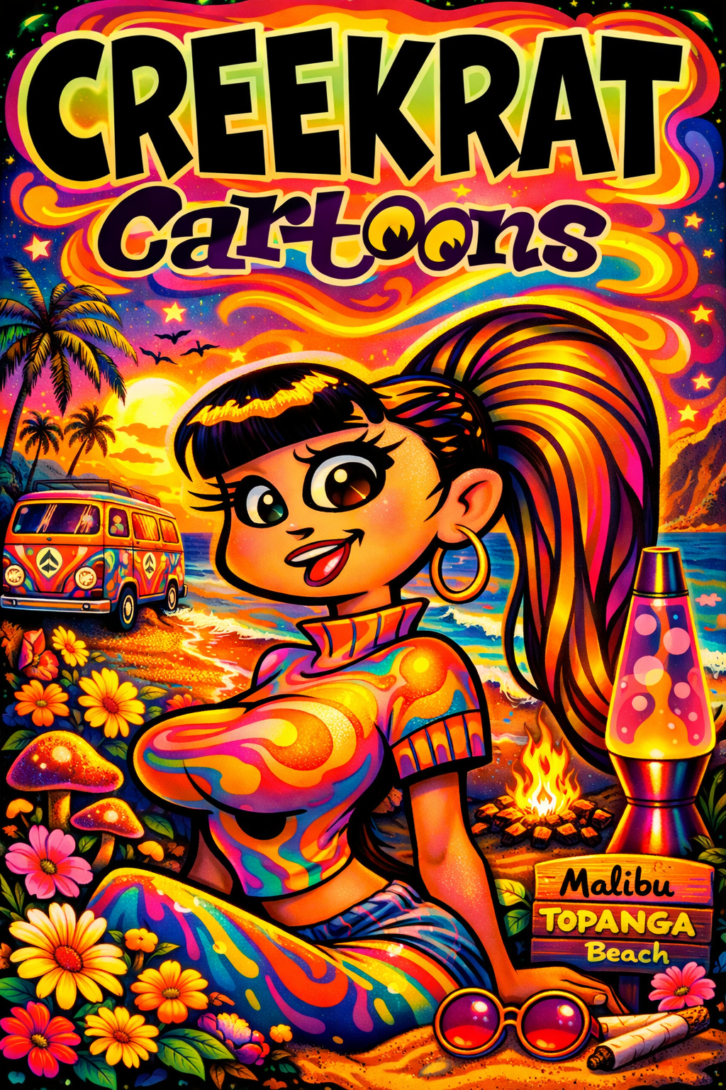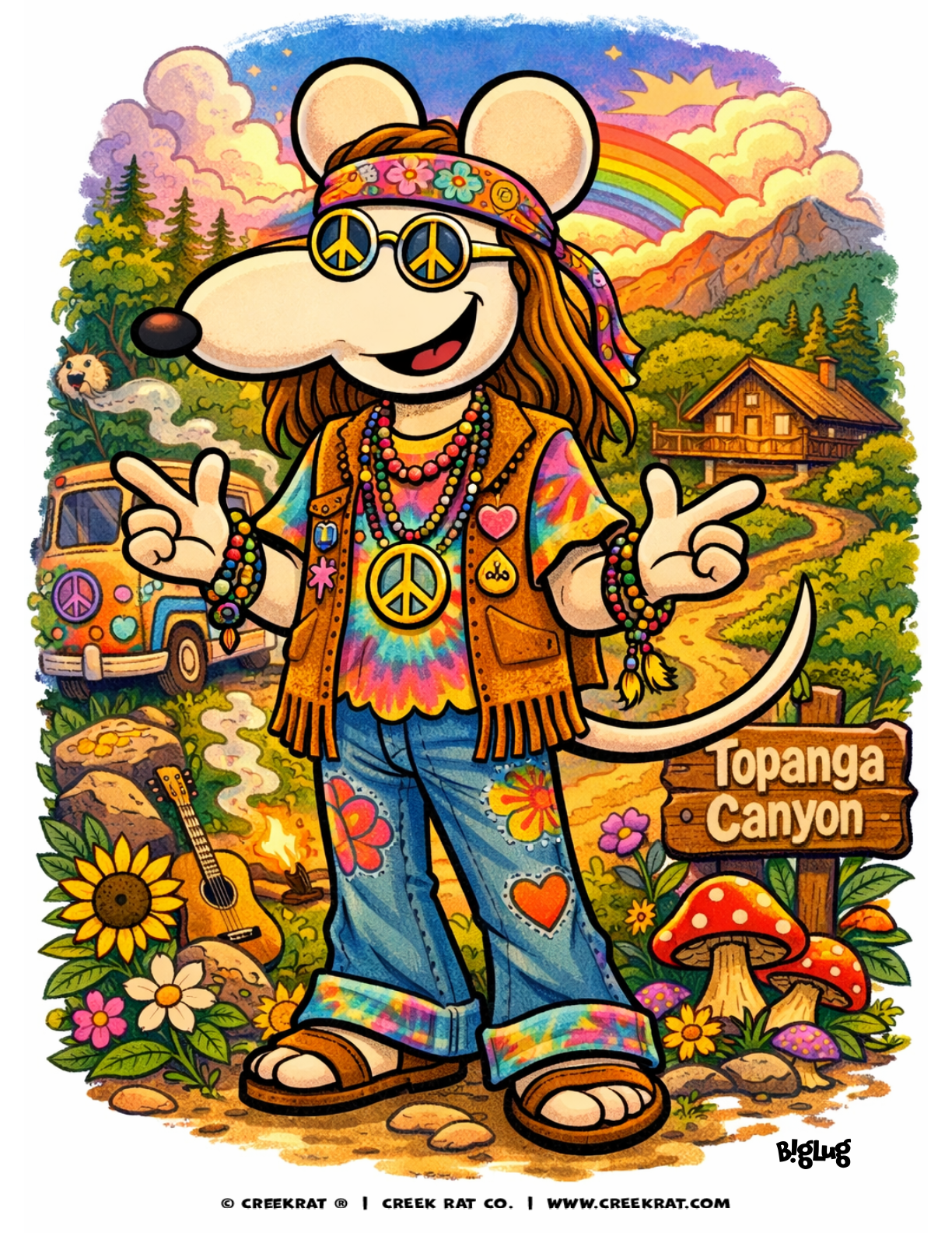 A Big Thank You to All Our Loyal Creek Rat Fans and Customers for Over 5 Decades, Hard to Believe! We hope the Creek Rat still brings you a Little Piece of Topanga Canyon and Malibu Beach California Sunshine via ToonTown to Your Corner of the World! Each piece of Creek Rat dropped is still hand drawn from scratch and individually crafted here at The Creek Rat Cartoon Studios. No two pieces of art are ever alike — each has its own Unique Special Style. A Special Creek Rat Gift that Keeps on Giving!