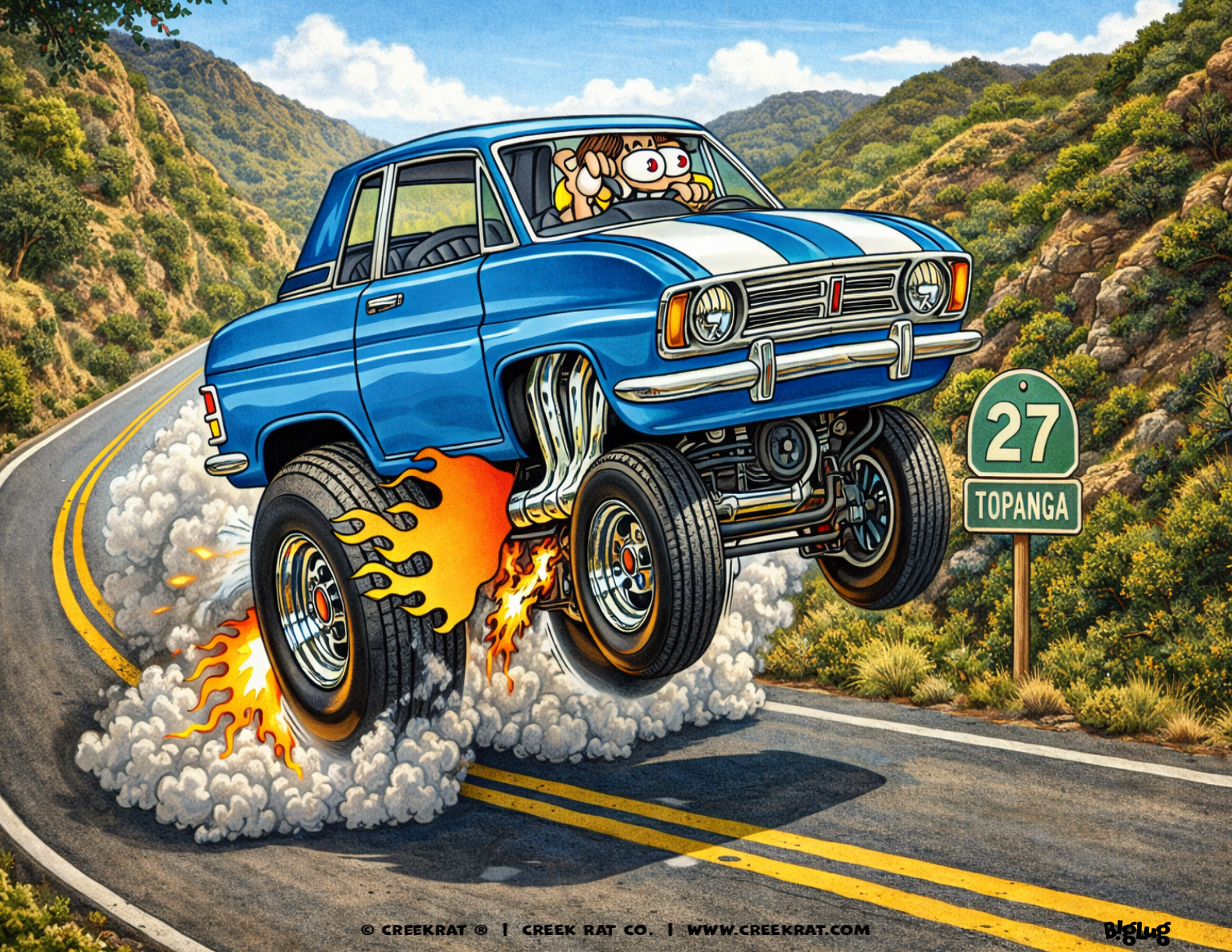 Our 2026 Creek Rat CARtoons Logo Art for Decals and Tee-Shirts! Tooling on PCH to the Topanga Canyon and Malibu Beaches!
