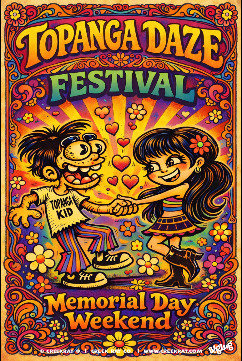 A Big Thank You to All Our Loyal Creek Rat Fans and Customers for Over 5 Decades, Hard to Believe! We hope the Creek Rat still brings you a Little Piece of Topanga Canyon and Malibu Beach California Sunshine via ToonTown to Your Corner of the World!
