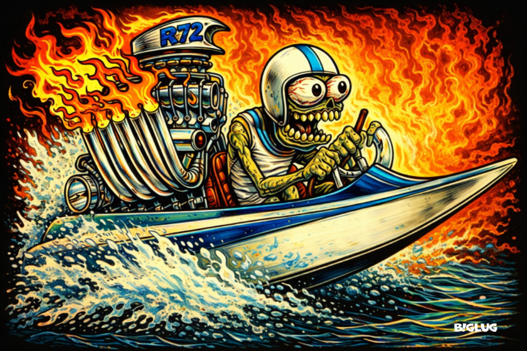 Fer our Good Buddies at Kona Boats fer Decals and Tee-Shirts! Here’s a new commissioned take on Creekrat Cartoons where we Cartoon in an actual photo, pretty kool!