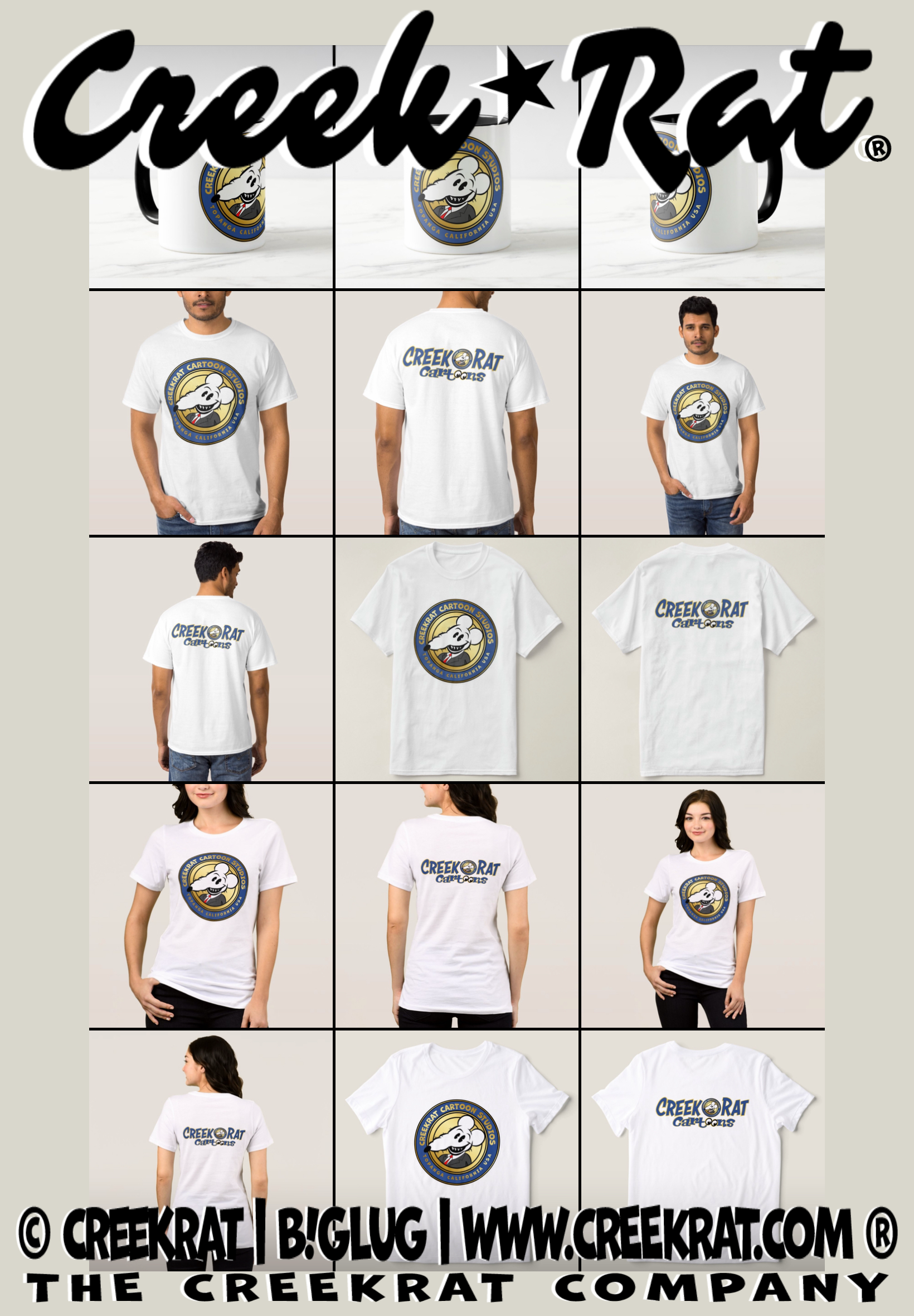 CREEK RAT also does Kool Kustom Individual Art Work fer your Tee-Shirts & Sweat Shirts & Hoodies & Baseball Caps! Need Kustom Art fer yer Club or Event or Business? Contact CREEK RAT! We can send you our ART in electronic form so you can have it put on directly on your product! Here are but a few or our commissioned Examples - most linked through our On-Line "CREEK*RAT" Store for direct purchase: Here's a Small Collection of Creek Rat Custom Tee-Shirt, Glassware & Baseball Caps Art!