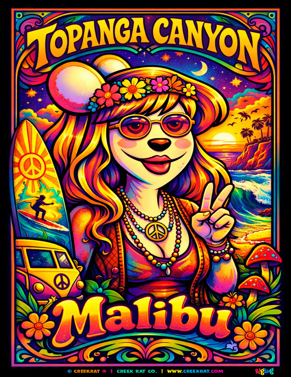 A Big Thank You to All Our Loyal Creek Rat Fans and Customers for Over 5 Decades, Hard to Believe! We hope the Creek Rat still brings you a Little Piece of Topanga Canyon and Malibu Beach California Sunshine via ToonTown to Your Corner of the World! Each piece of Creek Rat dropped is still hand drawn from scratch and individually crafted here at The Creek Rat Cartoon Studios. No two pieces of art are ever alike — each has its own Unique Special Style. A Special Creek Rat Gift that Keeps on Giving!