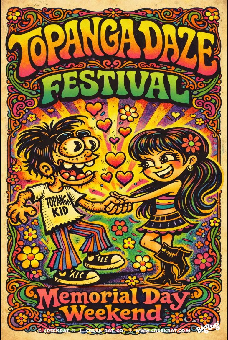 A Big Thank You to All Our Loyal Creek Rat Fans and Customers for Over 5 Decades, Hard to Believe! We hope the Creek Rat still brings you a Little Piece of Topanga Canyon and Malibu Beach California Sunshine via ToonTown to Your Corner of the World!